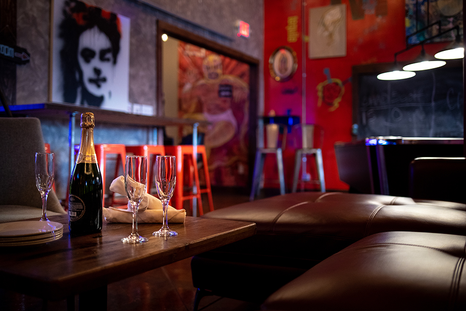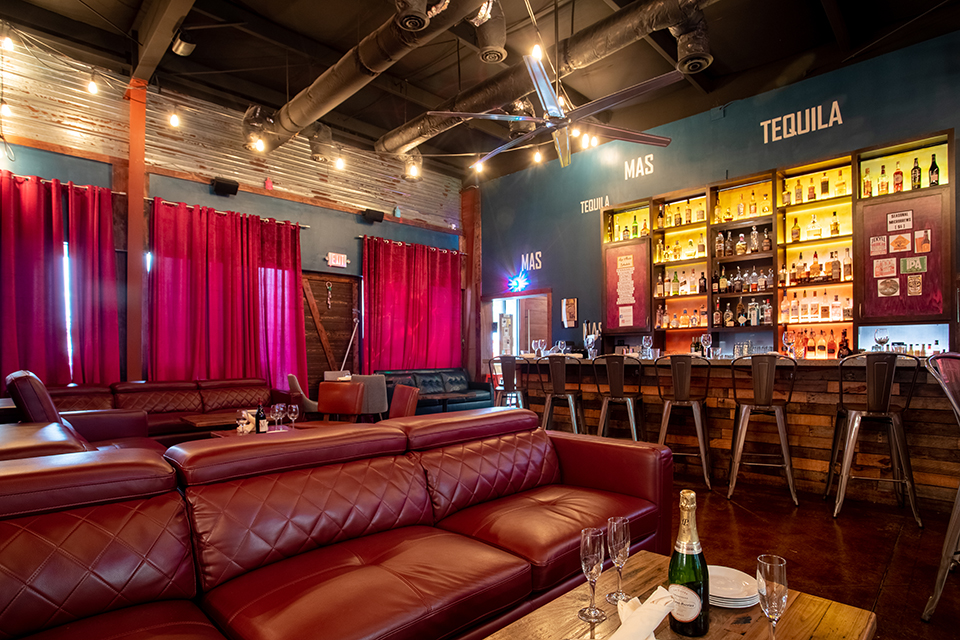 This space has a cool vibe, complete with leather sectional sofas with coffee tables, flowing velvet curtains, high top &/or low top tables for dining. Guests will have a dedicated full-service bar along with 20 bar seats. This is a versatile space, able to be arranged in multiple ways to best fit event needs. A total of 8 HDMI compatible flat screen smart TVs available for presentations if needed. Pool table, dart board, and an interactive TouchTunes jukebox with social media picture taking capability are also included in this space. Live music available upon negotiation.