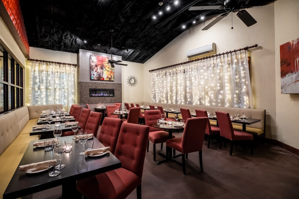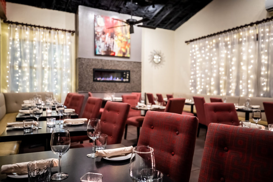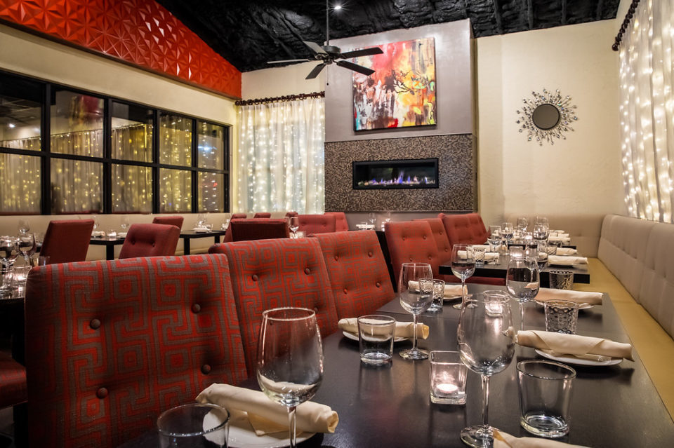 This space is contemporary and fun, yet elegant and perfect for a variety of occasions. Color splashes throughout with original modern art paintings and wall-to-wall lush banquettes. Louvered patio doors open to a private pergola with additional seating. Optional privacy shades available to cover windows between The Gallery & our main dining room. HDMI compatible 65″ smart TV available for presentations.